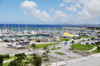 海から見る北谷のアメリカンビレッジは最高です! - クルージングの後は桟橋に戻り停泊して沖縄の海とサンセットを見ながらBBQディナー!